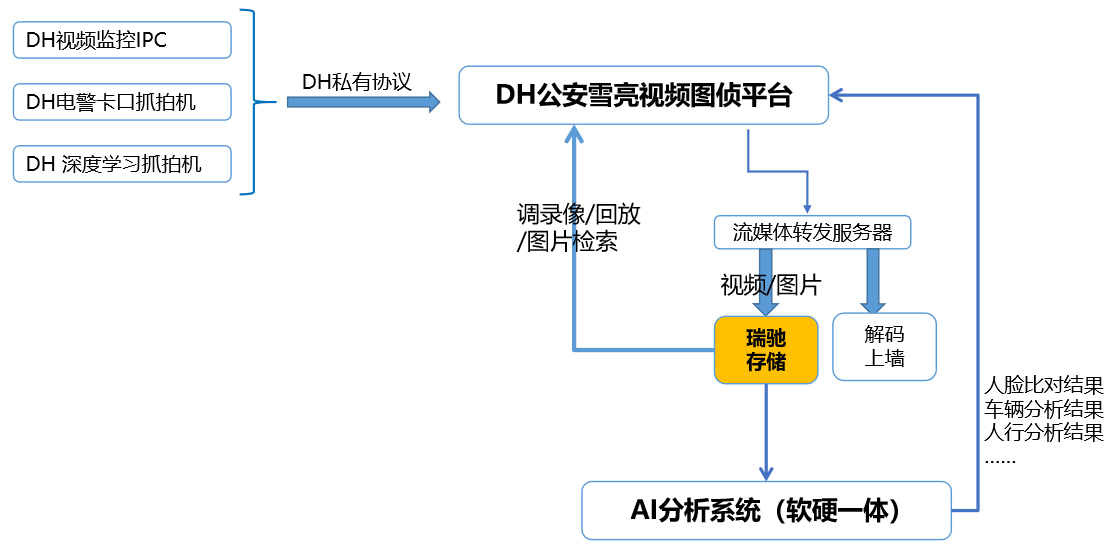 本項目部署11臺瑞馳分布式存儲,主要存儲祁東雪亮工程的攝像視頻和抓拍圖片,拓?fù)浣Y(jié)構(gòu)如下。