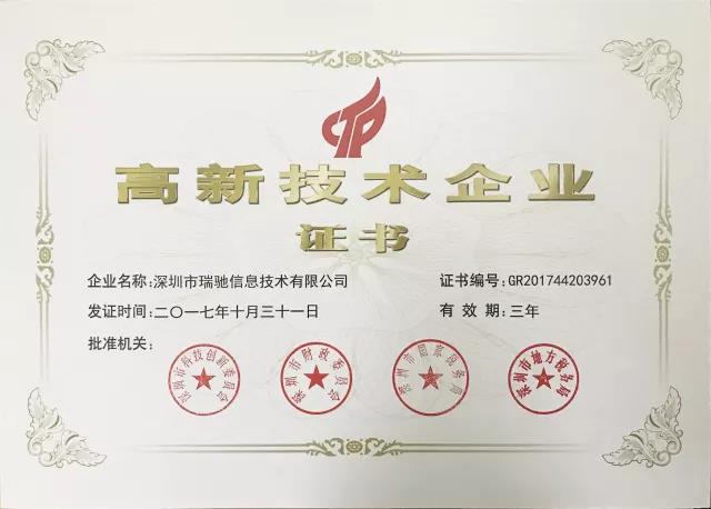 瑞馳信息榮獲“國(guó)家高新技術(shù)企業(yè)”認(rèn)定!